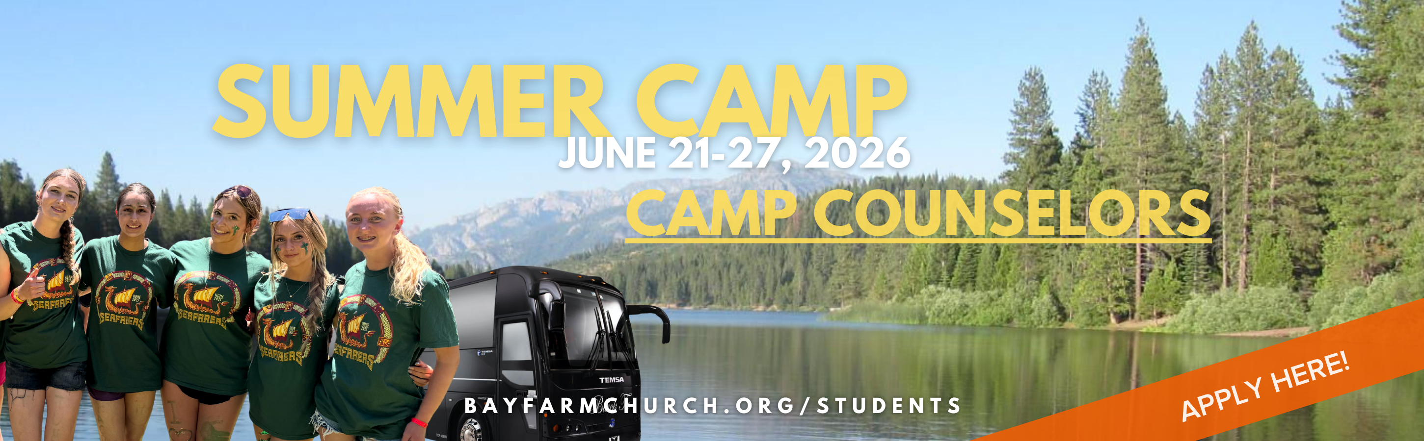 Yes! I'd like to be considered as a camp counselor for Junior High or High School campers for the summer of 2025 at Hume Lake Christian Camps going with Bay Farm Church!