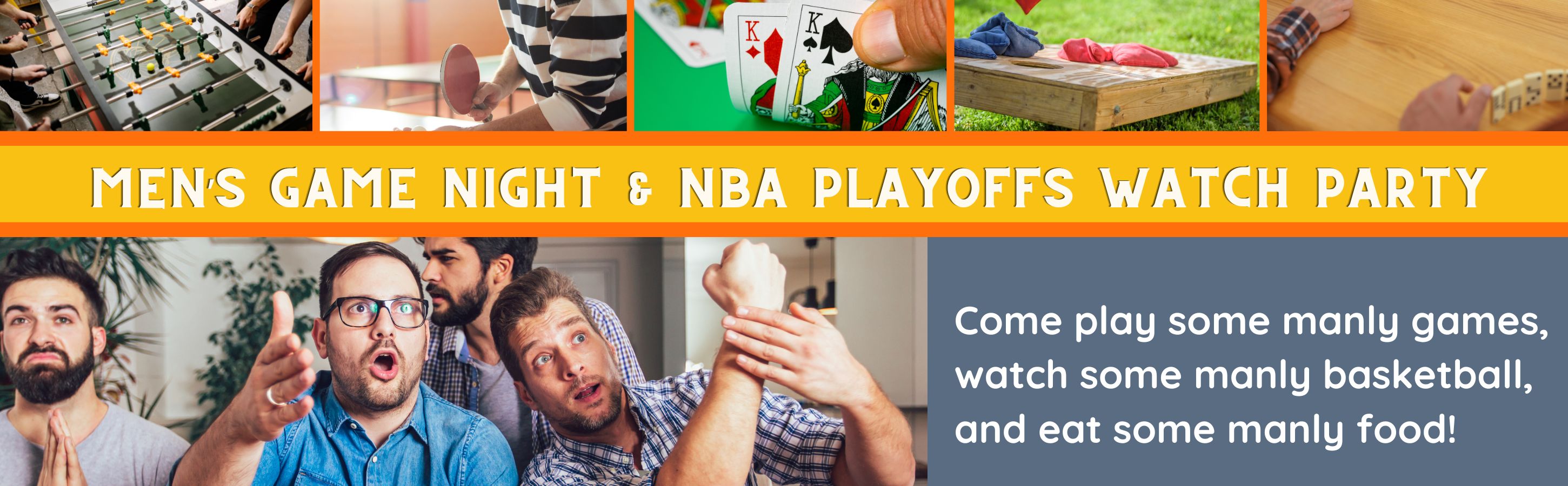 Wednesday, May 20 (6-9pm) | Manly games, manly basketball, manly food!